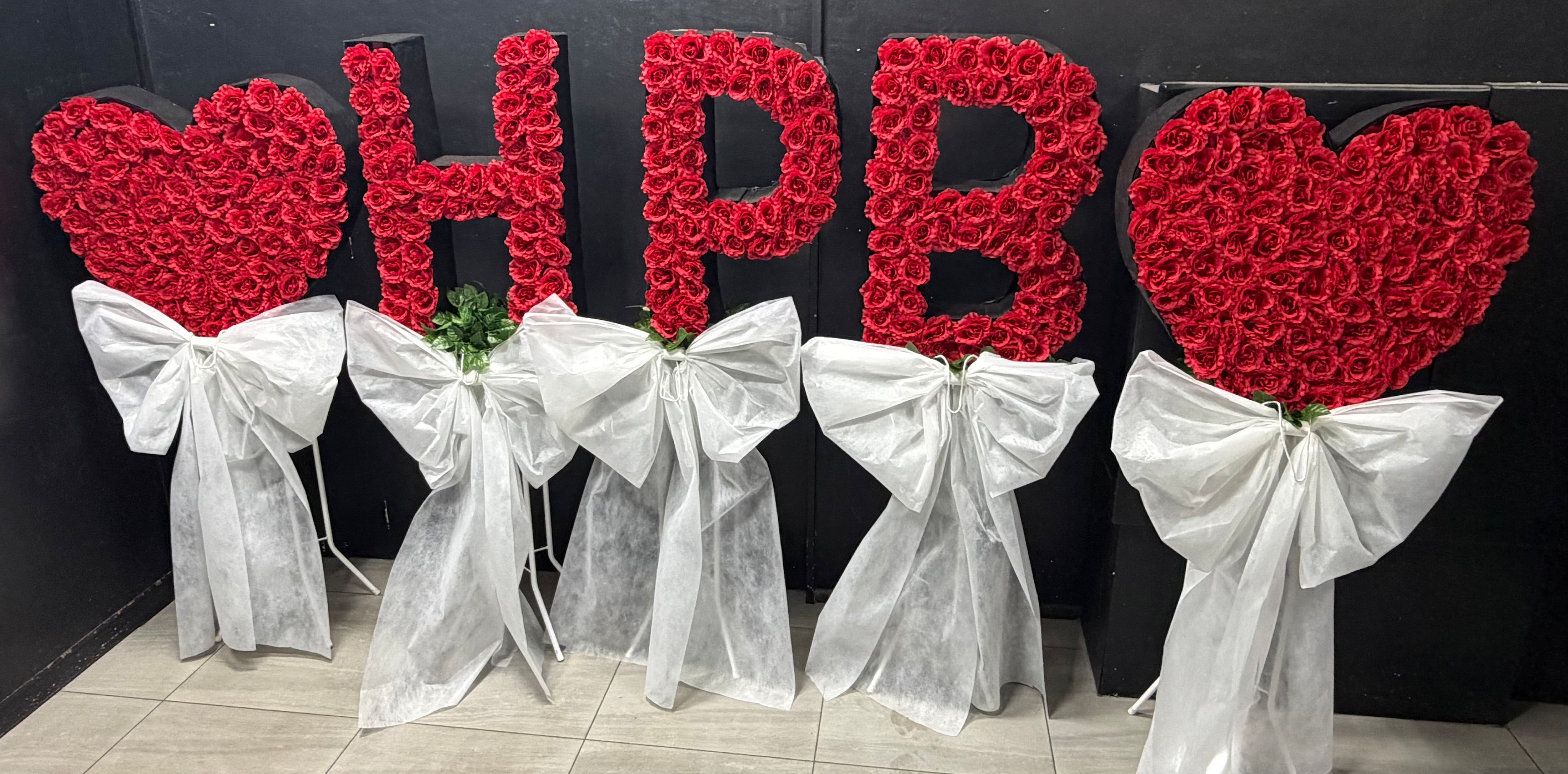 赤バラ文字スタンド(白リボン付き)